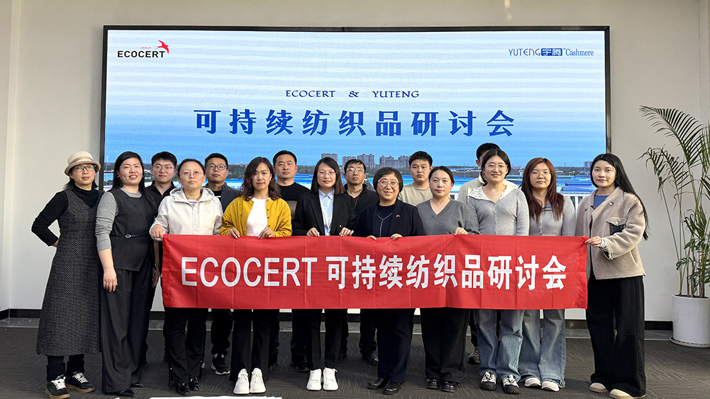 Yuteng Cashmere & ECOCERT Co-host Sustainable Textiles Seminar01 Apr. 2026On March 31, 2026, Yuteng Company, in collaboration with ECOCERT, held a Sustainable Textiles Seminar at its Yuteng Cashmere Dehairing Plant. The seminar focused on multiple key areas, including exploring how the EU Green Deal reshapes producer responsibility in the textile industry, and interpreting popular standards such as MMS 1.0, GOTS 8.0 (Global Organic Textile Standard version 8.0), and SFA, while introducing their application processes and key points. Representatives from various cashmere enterprises gathered at Yuteng to exchange insights and learn from each other, aiming to contribute to the sustainable development of the cashmere industry.